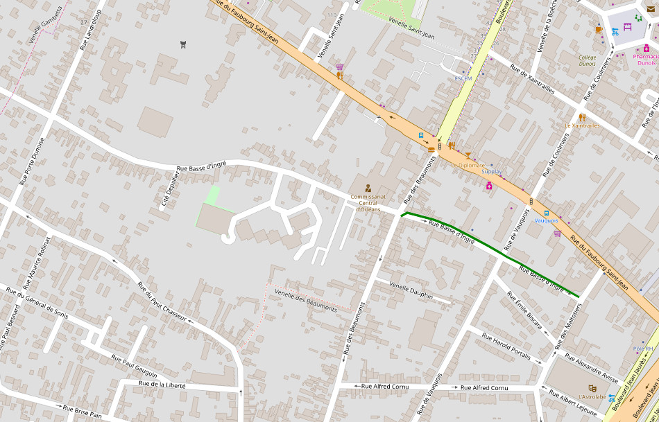 Encore plus loin, la rue Basse d’Ingré devient rue Paul Doumer, on entre dans Saint-Jean-de-la-Ruelle, et on dit adieu au double-sens cyclable.