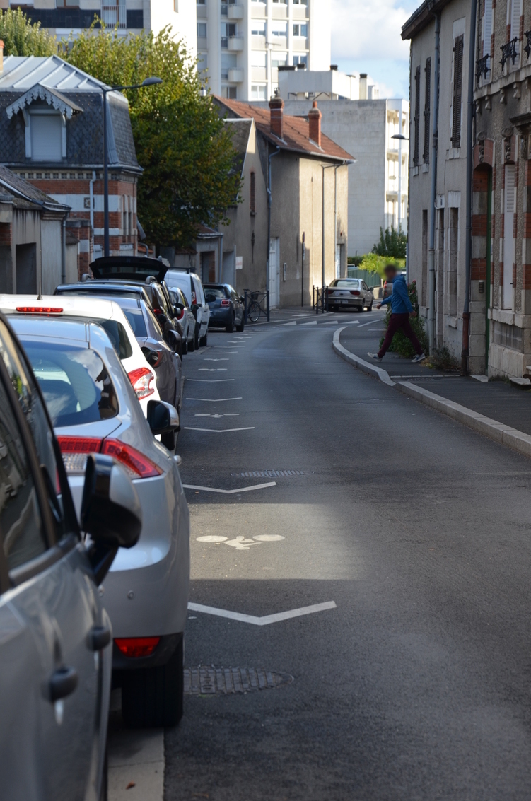 Le souci de ce quartier est que les affichages « Zone 30 » sont minuscules et pas assez nombreux. En parallèle, ces routes en zone 30 sont des lignes droites sans accessoire contraignant pour faire ralentir les automobilistes. De fait, les voitures roulent vite ( >50kmh) donc les cyclistes ont peur et le bruit envahit ces quartiers d’habitation.