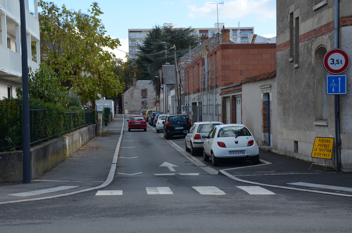 Dans le quartier Madeleine, la rue Basse d’Ingré a été requalifiée en 2013. À cette occasion elle est passée en zone 30 et la partie en sens unique a été mise en double-sens cyclable. C’est un cas intéressant car la chaussée est trop étroite pour permettre un croisement vélo/voiture fluide.