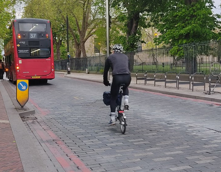 En dehors des voies de bus, la situation est contrastée, comme sur les ponts sur la Tamise, avec un piste bidrectionnelle sur Vauxhall Bridge mais rien du tout sur Tower Bridge :