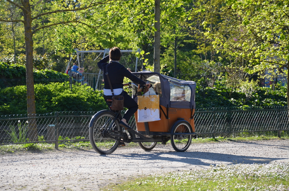 Toujours sur cette même grande place aux élégants grands pavés, un triporteur Christiania Bikes (ce n’est pas le même qu’hier).