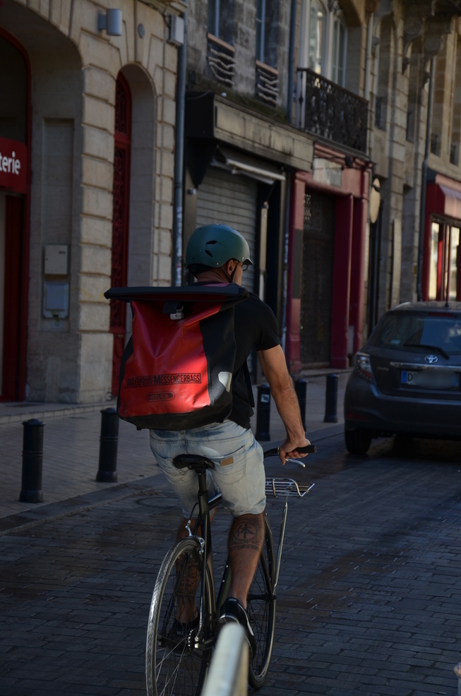 À Bordeaux, on croise des livreurs à vélo, particulièrement aux heures des repas.