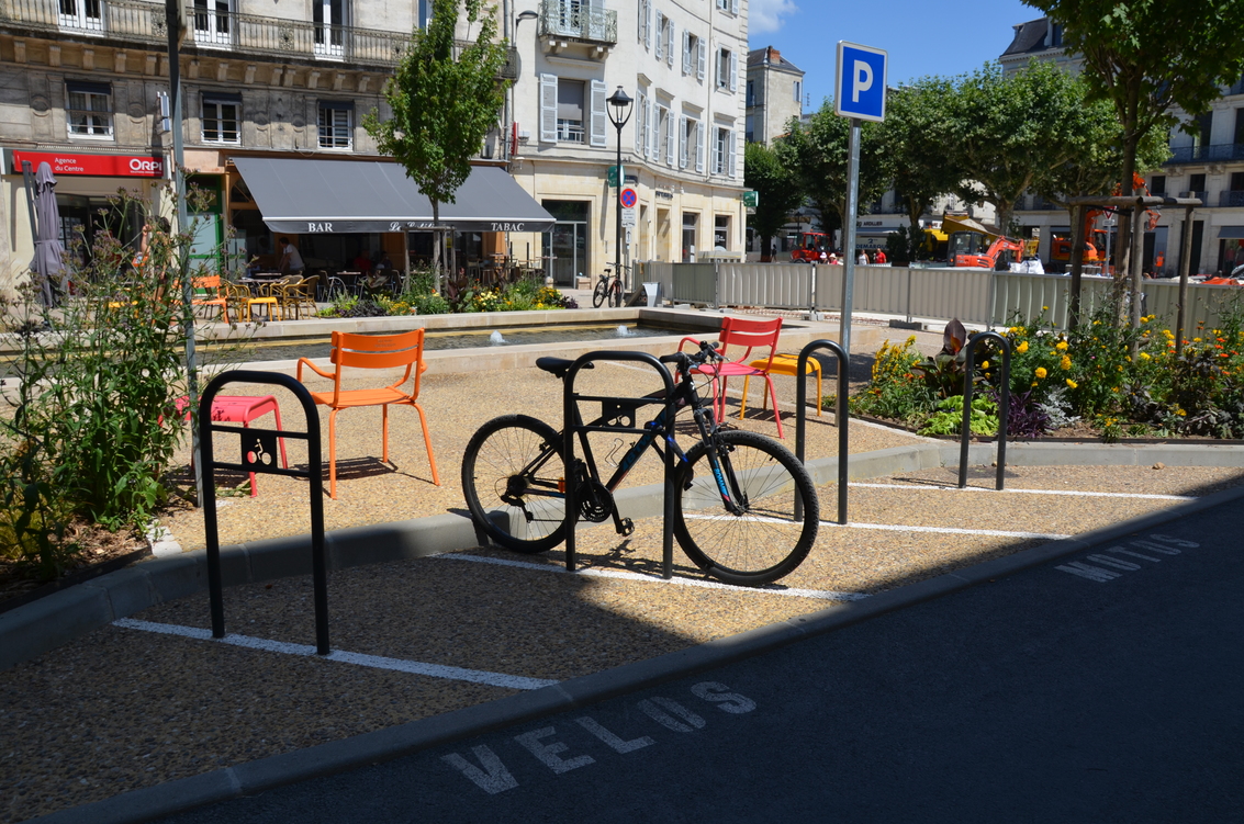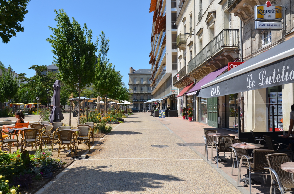 Dans le cadre d’une reconquête du centre ville10, la place André Maurois a été largement piétonnisée (et embellie)11. C’est une réussite mais si Olivier reconnaît que le maire Antoine Audi prend bien de la place à la voiture, il considère qu’il oublie d’en donner aux vélos et aux bus12. Et puis, largement critiqué par les commerçants arcboutés sur le no parking no business, il lâche du lest de ce côté-là en ouvrant de nouvelles zones de stationnement (esplanade Robert Badinter devant le théâtre).