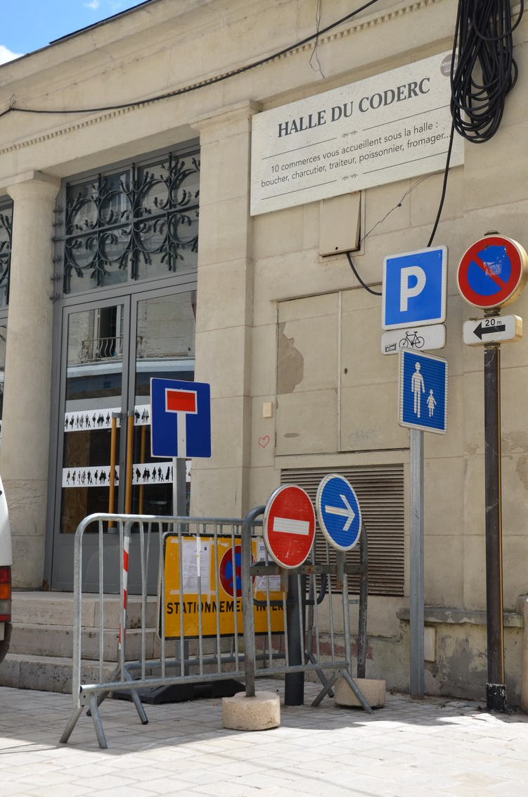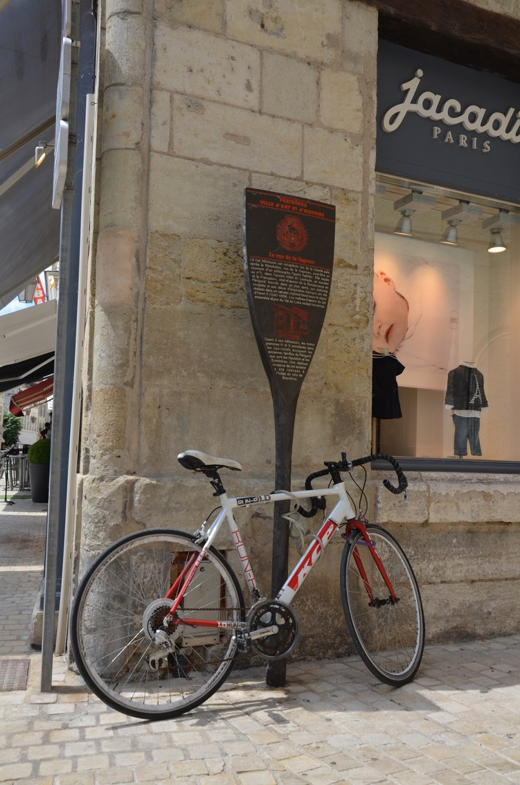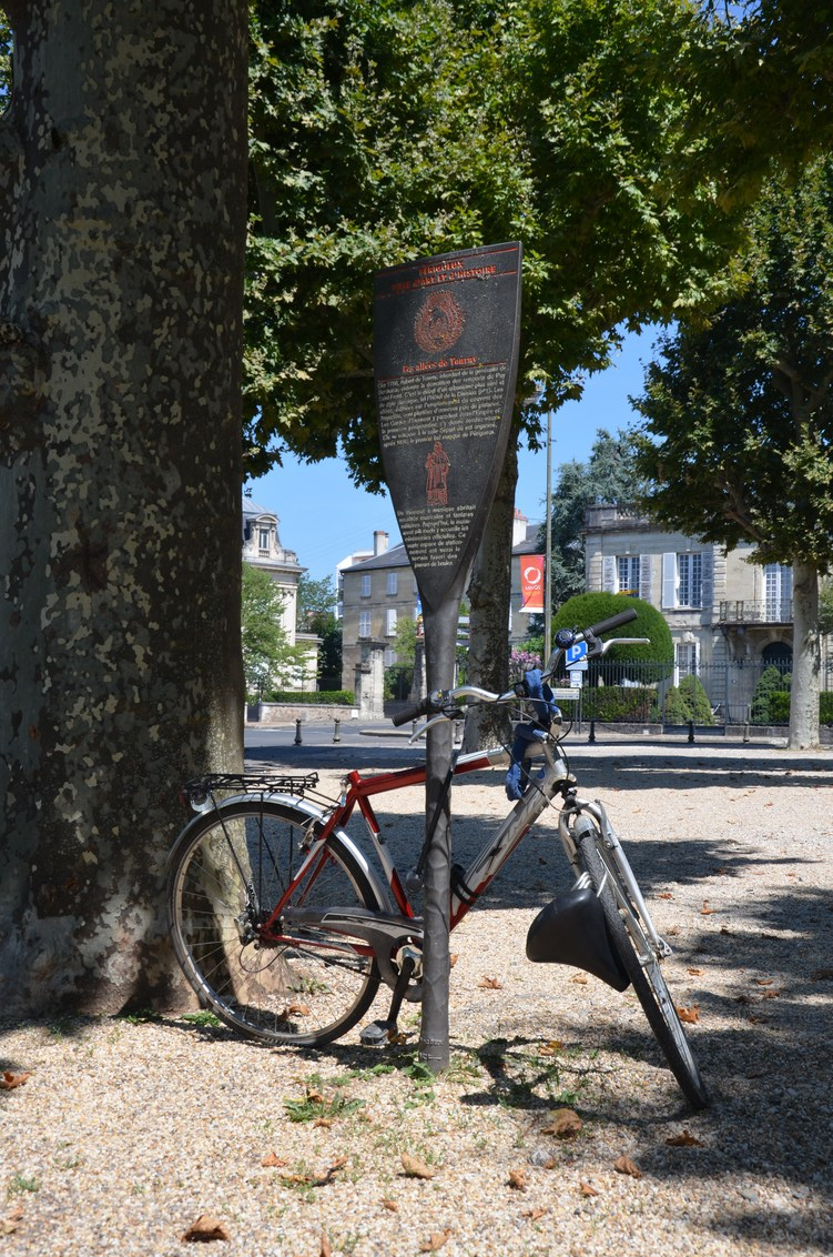À défaut d’arceaux, et comme partout ailleurs, le mobilier urbain est utilisé. Les solides poteaux racontant un point d’histoire locale font parfaitement l’affaire :