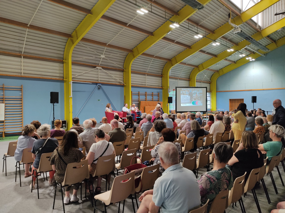 23 juin 2025 : réunion publique au gymnase Pellé à Saint-Marceau. La mairie a prévu les barrières Vauban pour accrocher les vélos à l’extérieur et beaucoup de chaises à l’intérieur. Affluence moins importante mais néanmoins importante3.